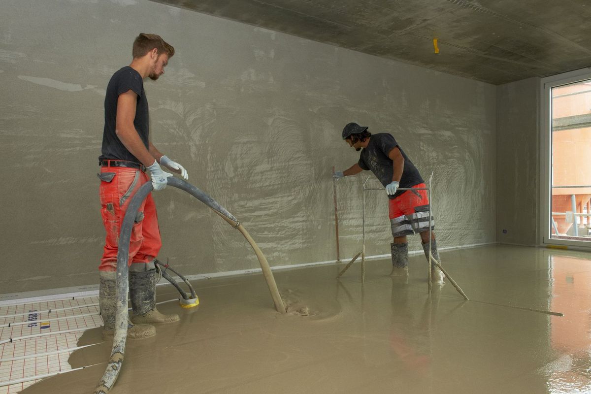 Die Industrie- und Unterlagsbodenbauer/-innen erstellen Unterlagsböden und Bodenbeläge, zum Beispiel in Fabrikhallen, in öffentlichen Bauten oder in Wohn- und Bürogebäuden.