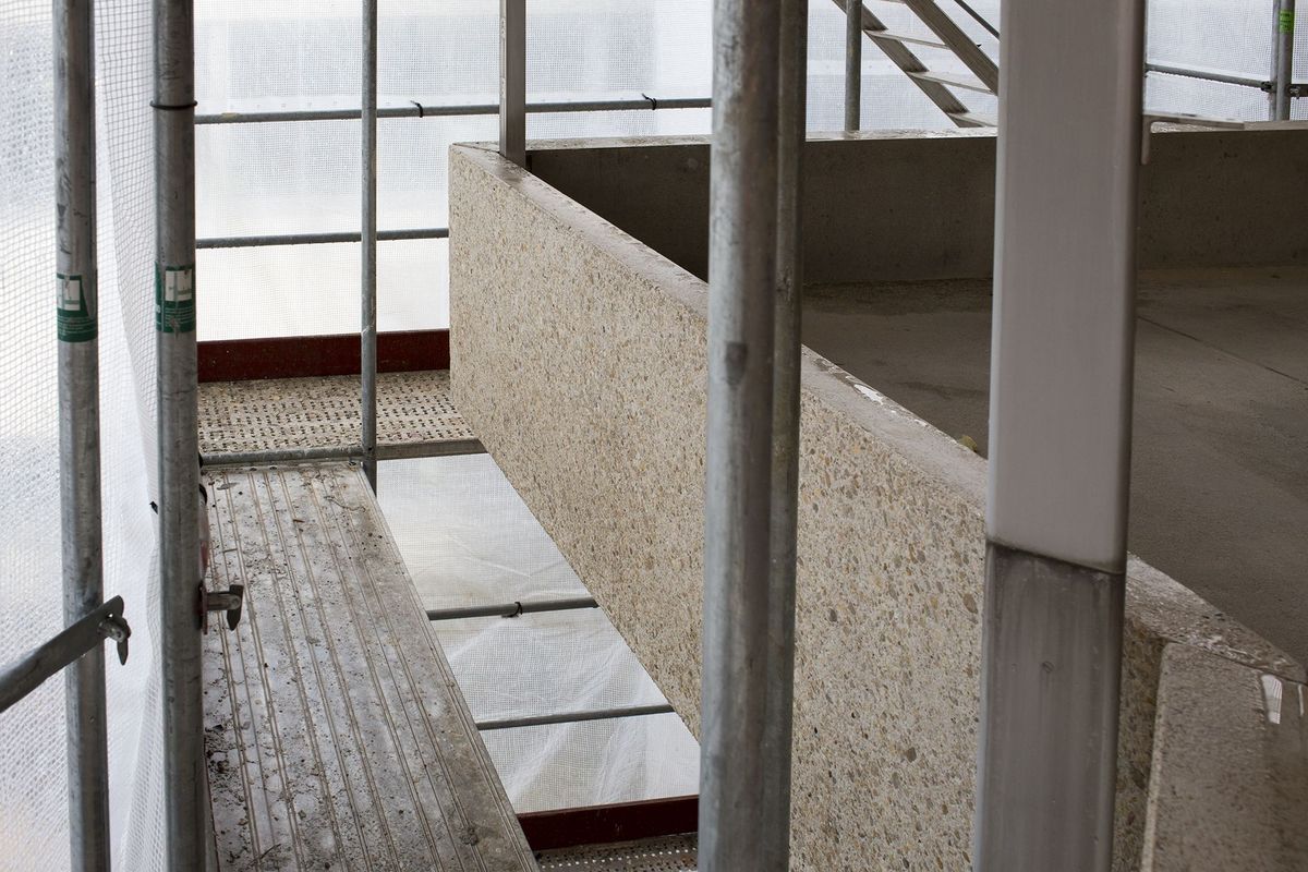 Balkonbrüstungen aus Muschelkalk, Anpassung der optischen Betonstruktur