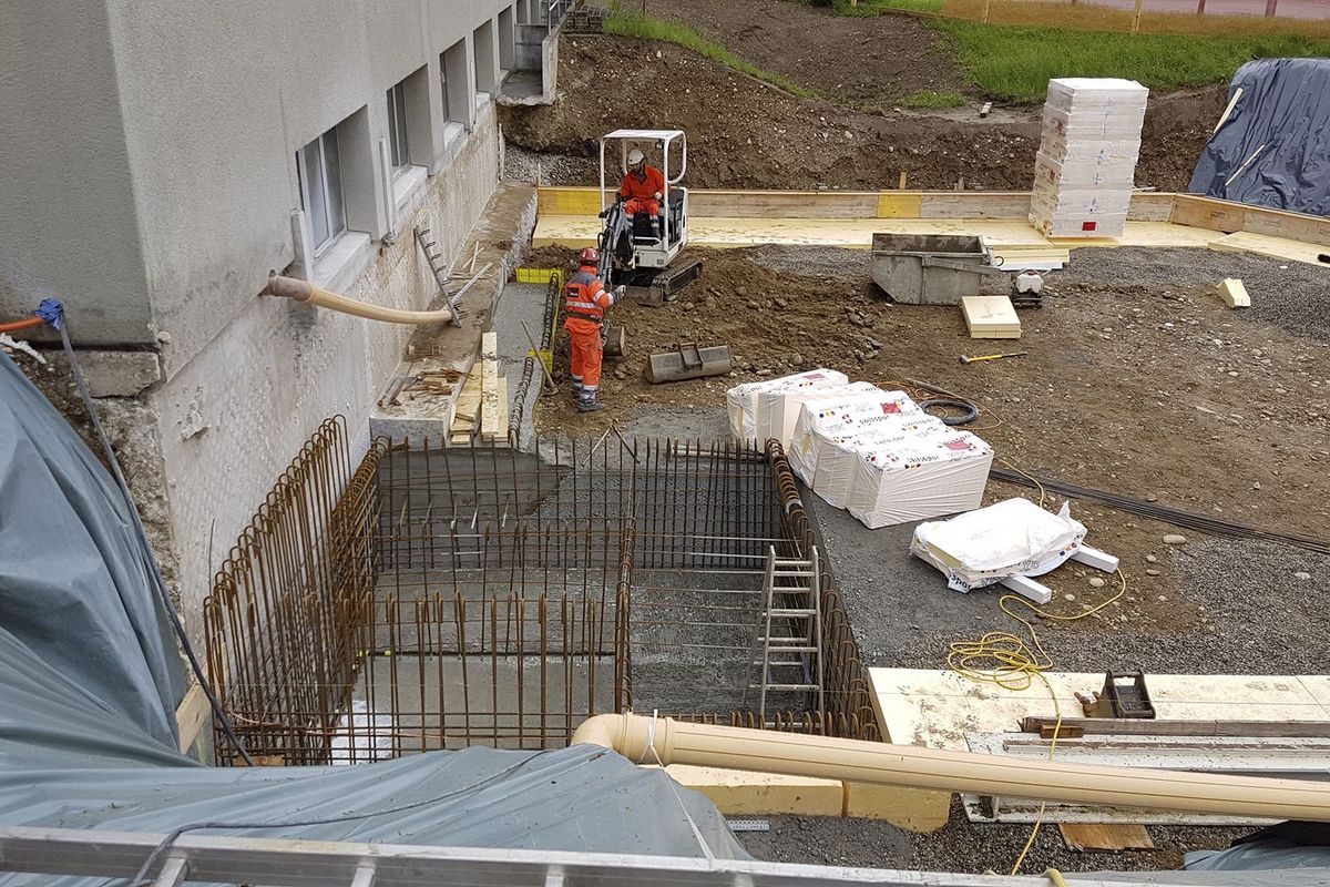 Bauen an der Eisenbahnlinie, enge Platzverhältnisse