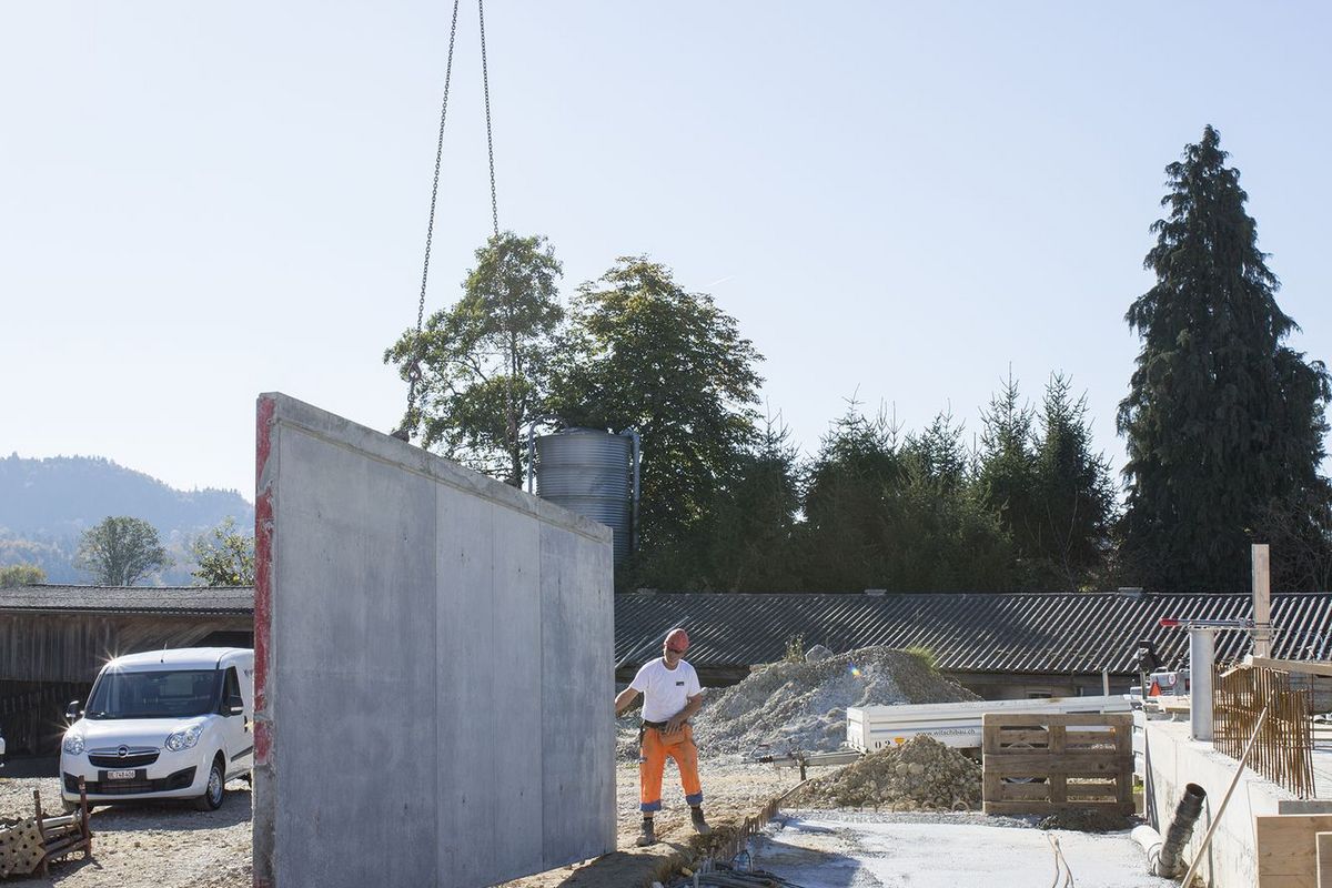 An Weihnachten 2017 geht er in Betrieb: der neue Maststall auf einer prächtigen Anhöhe im Fäilimoos bei Melchnau. Der Stall bietet Platz für 800 Schweine. Mit einer Unterflurlüftung kann der Stall im Sommer gekühlt und im Winter geheizt werden. Auf einer Seite ist der Stall zudem mit einer Bodenheizung für die jüngeren Masttiere ausgestattet.