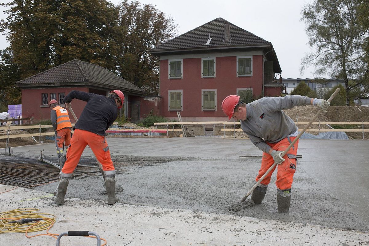 Baumeisterarbeiten, Bohren und Schneiden, Maurerarbeiten, Monobeton im Einstellhallenboden